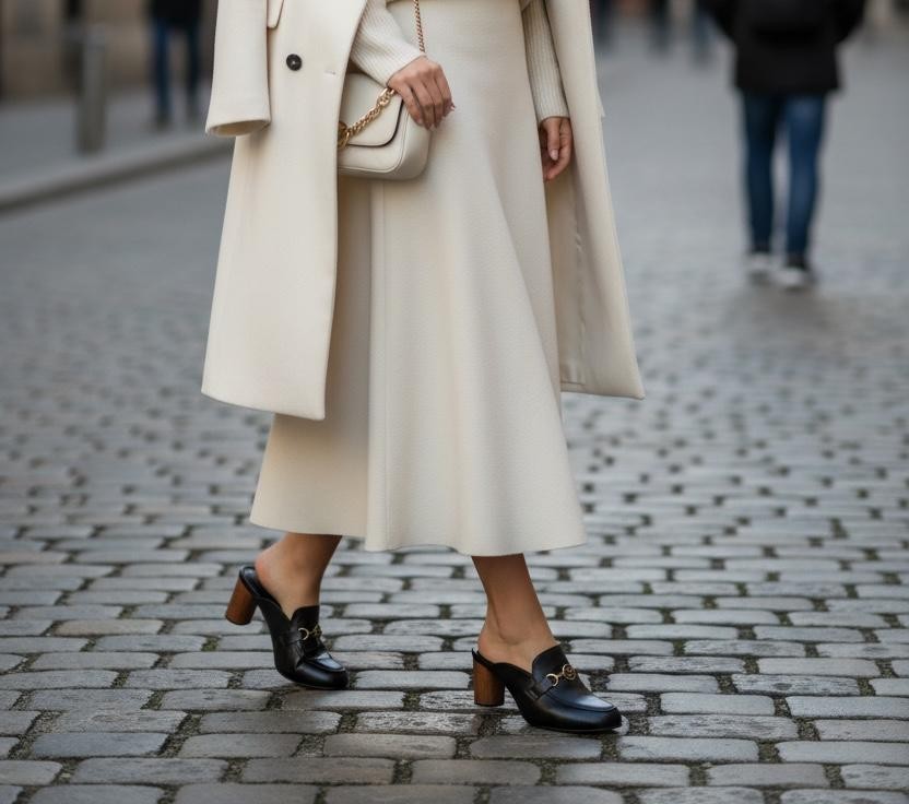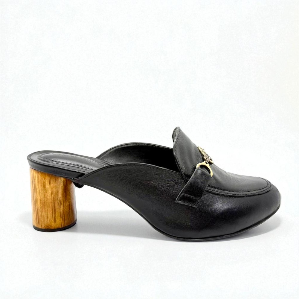 A Mule Noir traduz a elegância funcional da coleção Élégance. Confeccionada em couro, apresenta linhas limpas e uma silhueta sofisticada, pensada para mulheres que valorizam presença e versatilidade. O salto de madeira caixeta com 6 cm de altura confere estabilidade e carácter ao modelo, enquanto a palmilha comfort assegura bem-estar ao longo do dia. O bridão com a sigla GS surge como detalhe discreto e identitário da Glowseven. A tira com fivela permite adaptar o modelo, podendo ser usado como mule ou como sapato com tira, graças à presilha na sola junto ao salto, que garante encaixe seguro e funcionalidade sem comprometer a elegância.