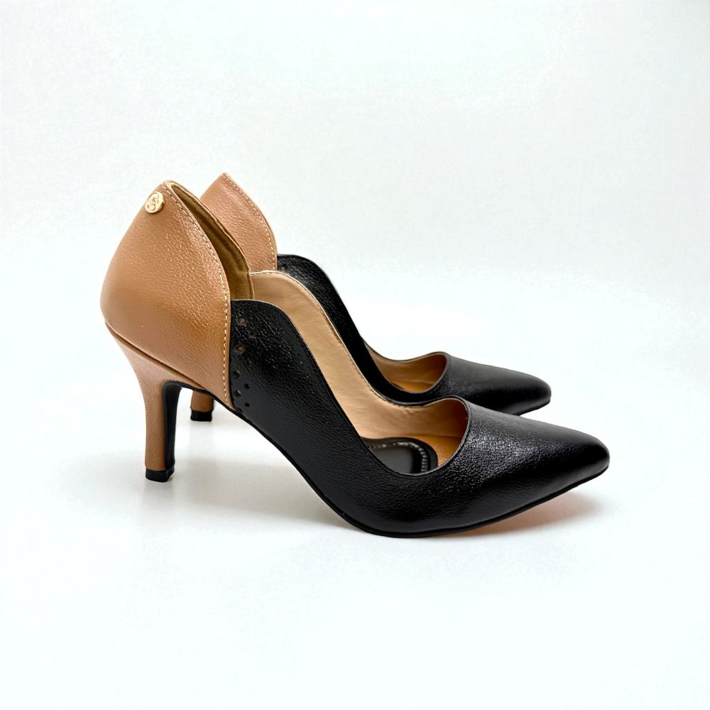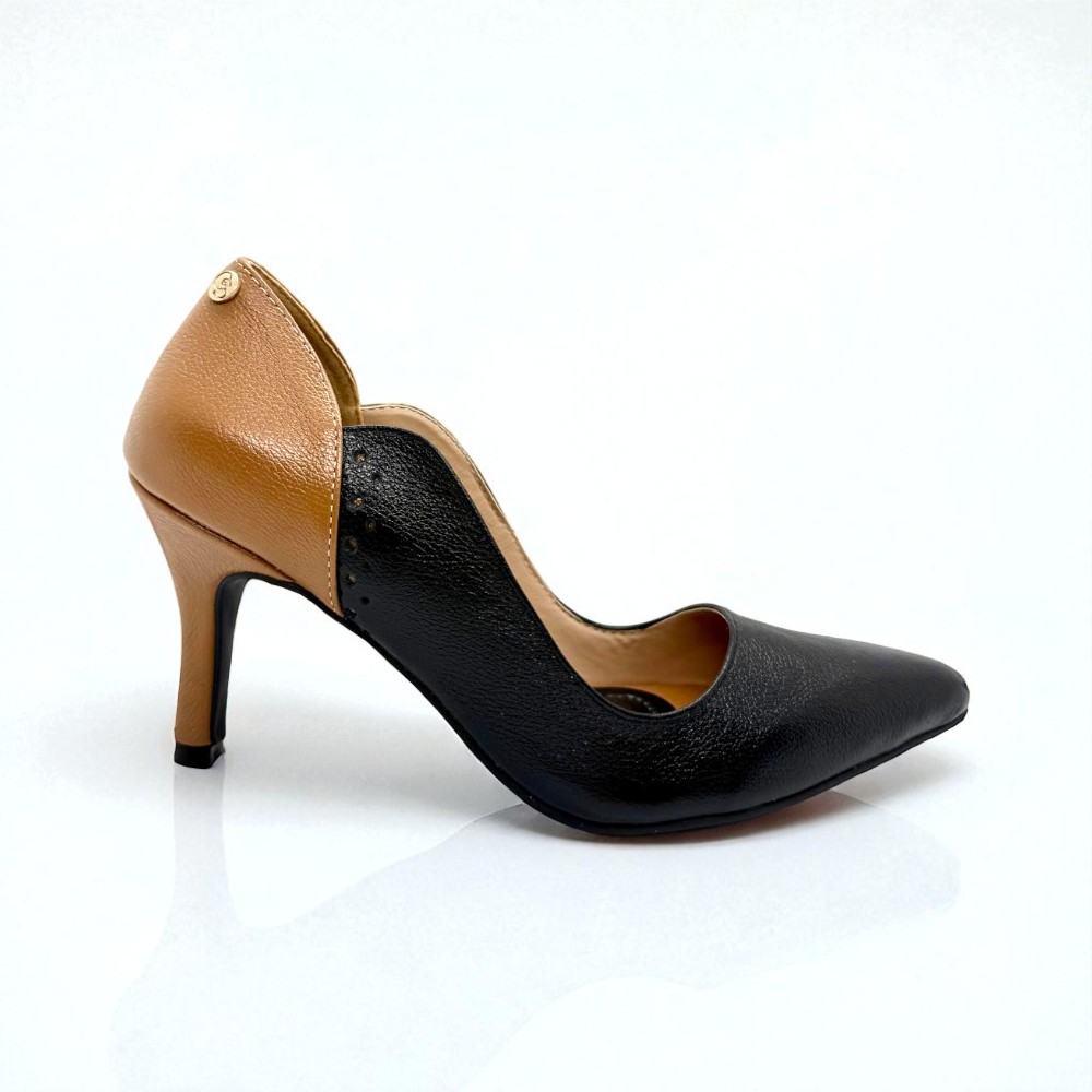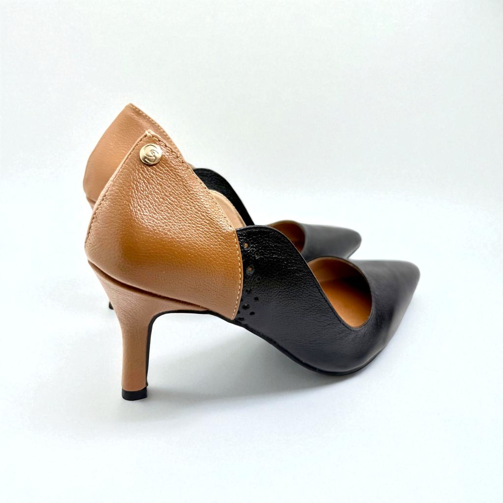 O Scarpin Marta combina contraste clássico e sofisticação intemporal. Confeccionado em couro nas cores preto e camel, destaca-se pela harmonia elegante entre os tons e pelas linhas femininas que valorizam o pé. O salto de 7 cm proporciona altura equilibrada e postura elegante, enquanto a palmilha Comfort garante maior conforto ao longo do dia. O rebite metálico com a sigla GS assina o modelo com identidade e exclusividade Glow Seven. Um clássico contemporâneo pensado para mulheres que apreciam elegância com personalidade.